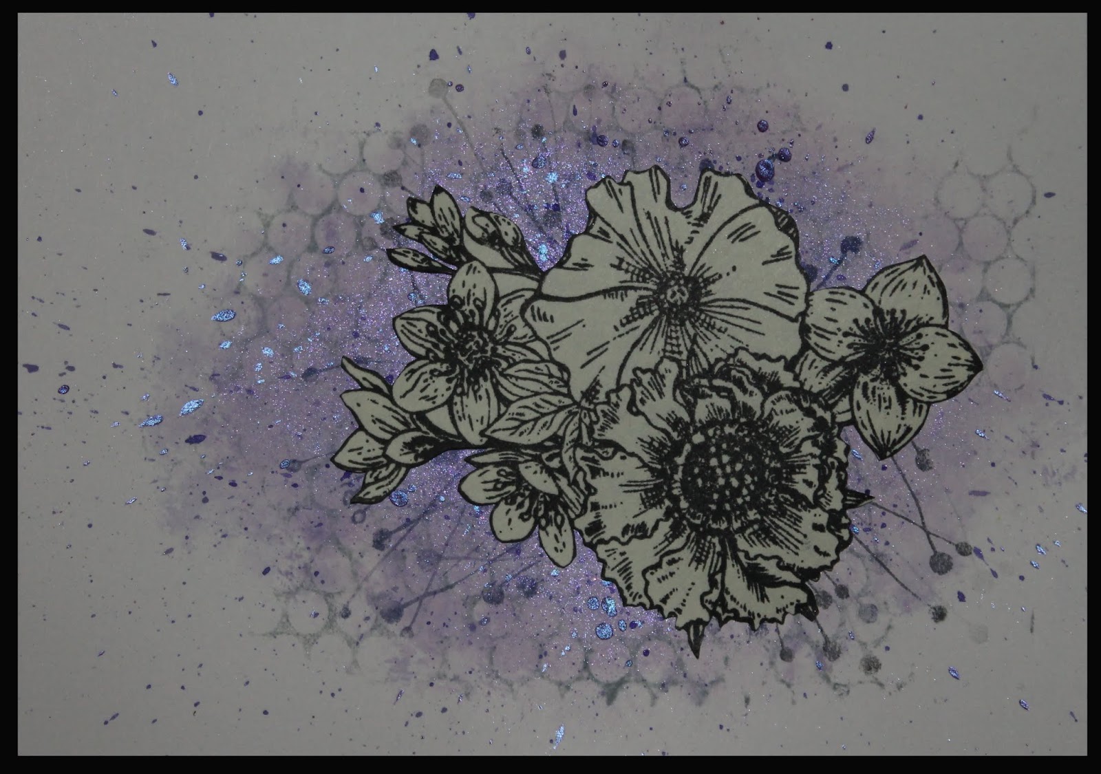 - Using the Stamen Stamp from the Victorian Garden Stamp Set, stamp around your flower mask using a mixture of Blue Violet and Watering Can Archival Inks